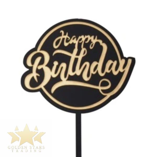 Acrylic Happy Birthday Topper – Black/Gold #31380