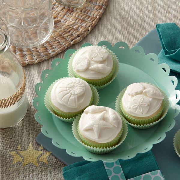 Using this silicone mold with fondant or gum paste is sure to bring out your inner mermaid. Create seashells, starfish, sand dollars, coral branches and ocean wave borders on cakes, cupcakes and more.